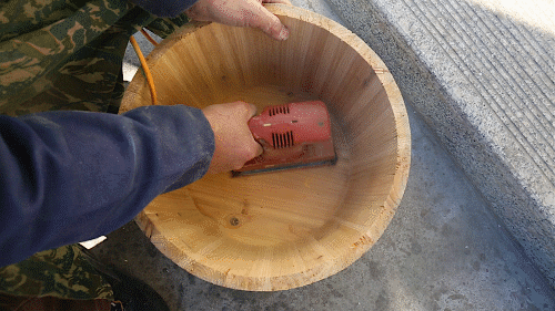 13 刨光 工具原料:抛光机、磨光机 工艺流程:平口→刨光→坡边。用电刨把桶壁抛光,用磨光机把桶壁磨成坡面。