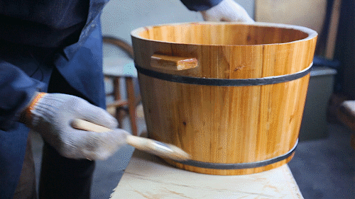 14 刷油 工具原料:油、刷子 工艺流程:用毛刷给桶内外壁刷油。