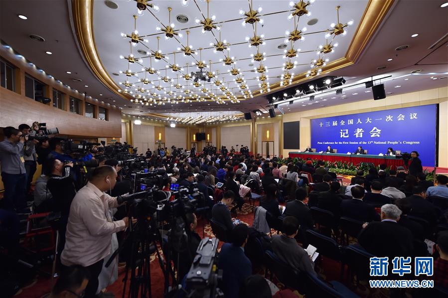 3月7日,十三届全国人大一次会议新闻中心举行记者会,邀请农业部部长韩长赋,农业部新闻发言人、办公厅主任潘显政就“实施乡村振兴战略推动农业转型升级”相关问题回答中外记者的提问。 新华社记者 李鑫 摄