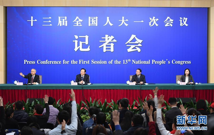 3月7日,十三届全国人大一次会议新闻中心举行记者会,邀请农业部部长韩长赋,农业部新闻发言人、办公厅主任潘显政就“实施乡村振兴战略推动农业转型升级”相关问题回答中外记者的提问。 新华社记者 申宏 摄