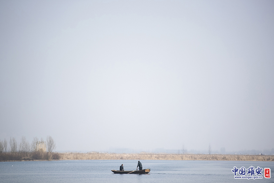 清晨,正在打渔的大张庄村民向白洋淀中心划去。王永康 摄