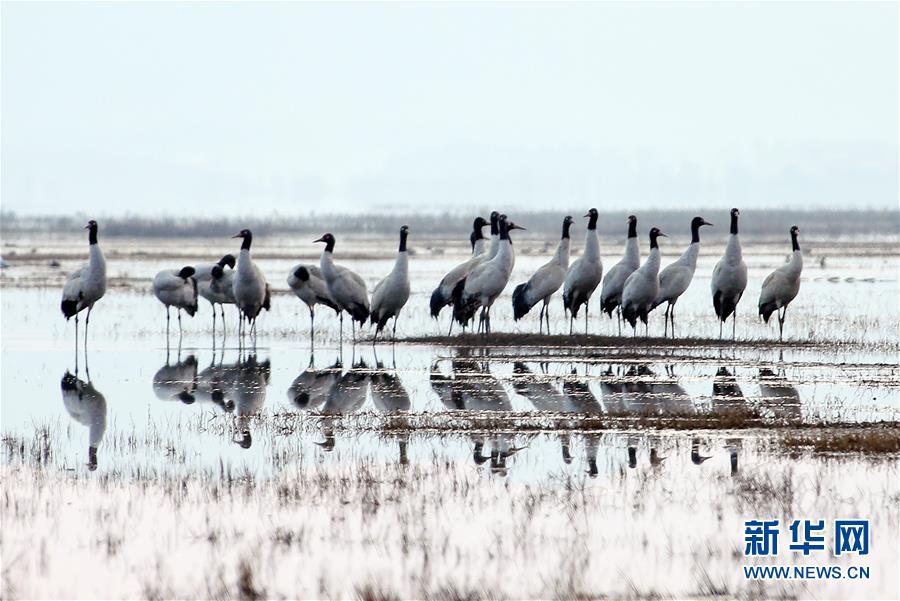 这是3月9日在贵州草海保护区拍摄的黑颈鹤。