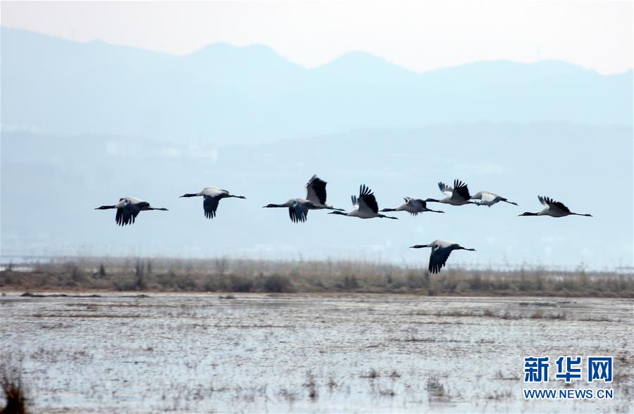 这是3月9日在贵州草海保护区拍摄的黑颈鹤。