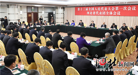 3月10日,出席十三届全国人大一次会议的河北代表团分别召开全体会议和小组会议,审议最高人民法院工作报告和最高人民检察院工作报告。 记者赵威摄