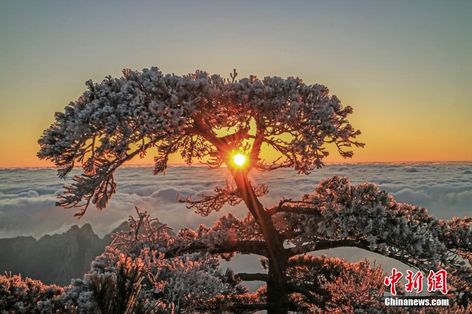 黄山云海、日出、雾凇多景齐现 壮丽景观美如画