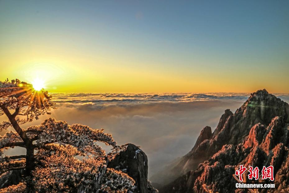 黄山云海、日出、雾凇多景齐现 壮丽景观美如画
