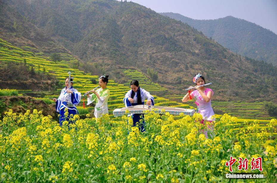 悠扬古乐和着韵味十足的徽剧演唱,吸引游客围观。方华彬 摄