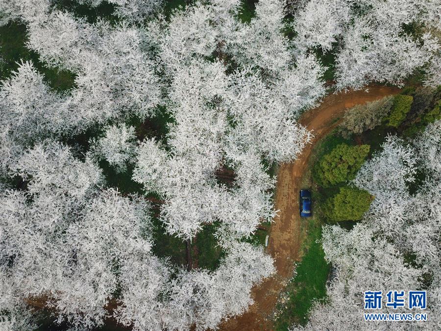 这是航拍的贵州省贵安新区樱花园(无人机3月14日拍摄)。 新华社记者 欧东衢 摄