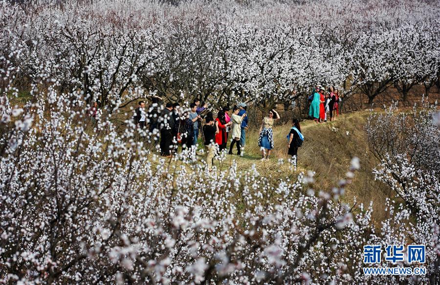 日前,陕西蓝田华胥镇上许村杏花谷里杏花绽放,连片的花海成为游人踏青休闲的好去处。