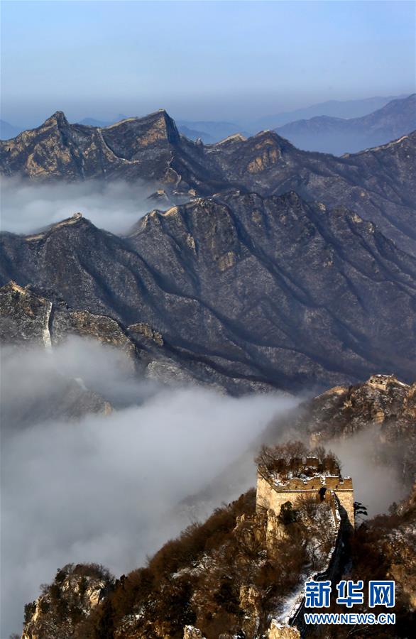 3月18日,一场春雪过后,位于北京怀柔的箭扣长城别具韵味。新华社发(卜向东 摄)