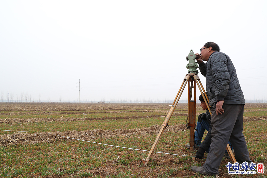 3月18日,雪后初晴,寒意仍浓,雄安新区雄县米家务镇板西村一处农田却一派火热。来自河北省送变电有限公司的工程人员正在对京雄城际铁路特高压线路的塔基进行分坑定位。谁也想不到,这片农田2天前才开始征地,现在就已在施工。