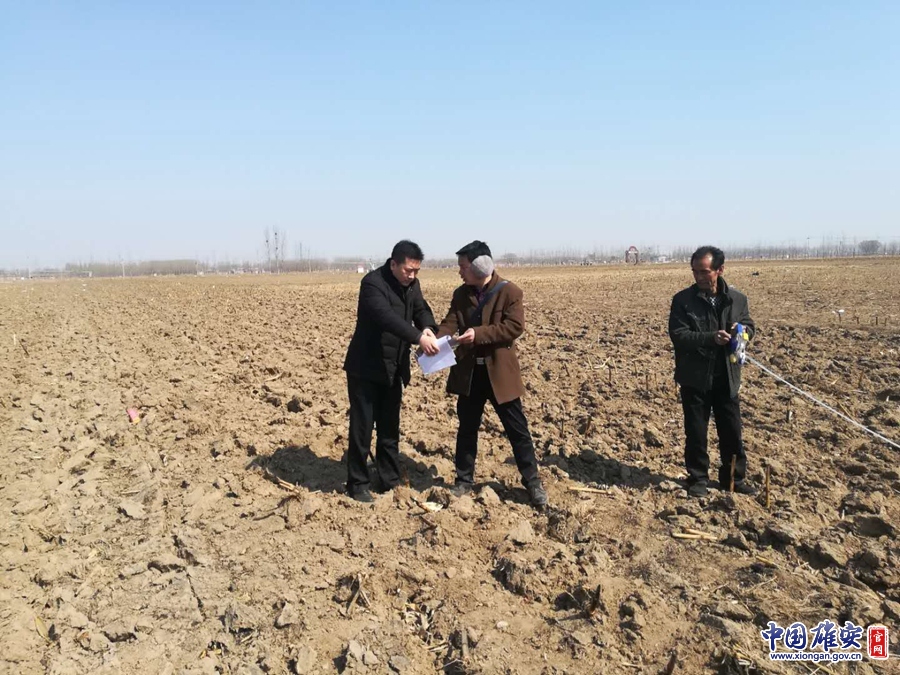 3月16日早上,中铁上海工程局集团第四工程有限公司新建京霸铁路五标项目部一分部、雄县交通局、高铁征迁指挥部、国土测绘部门及米家务镇政府相关人员抵达征地现场。现场测量人员使用专业测量器,通过GPS打点,定位征地红线,确定征地范围。与此同时,板东、板西两村村干部开始将征地进行分户登记,并测量每户的征地面积。划定征地范围与测量登记同步进行,达成无缝对接。测量人员定位完一处红线,村干部马上测量一处,分工合作,相互配合。中午1:30,所有测量完毕,村干部与测绘单位核对征地面积,确保数据准确无误。