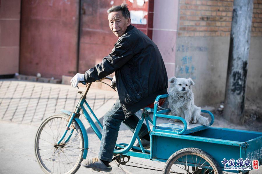 一位脚踩三轮车的老人,后座载着的却是一只小白狗,这是乡间独有的一幅画面。安静的街道,并没有因为小狗的出现而打破,反而显得更为自然温馨。人与自然,和谐共处。