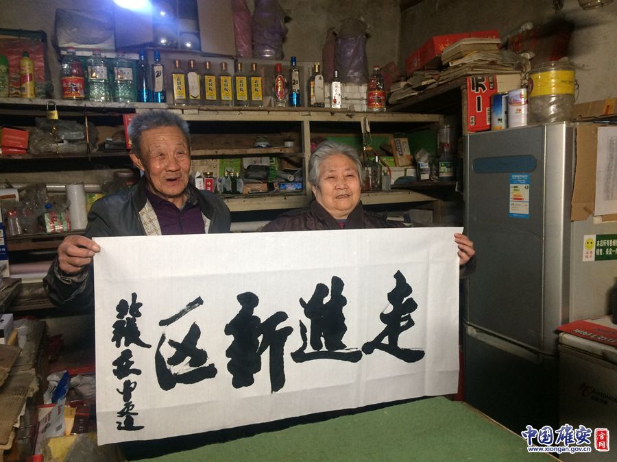 小卖部的主人是一对老夫妇,大爷爱好书法,挥笔写下“走进新区”四个大字。简单朴实的四个字饱含老人对新区的向往。三十年来,小卖部售出的不仅是货物,更是记忆。老夫妇等待的不只是过客,更是归人。
