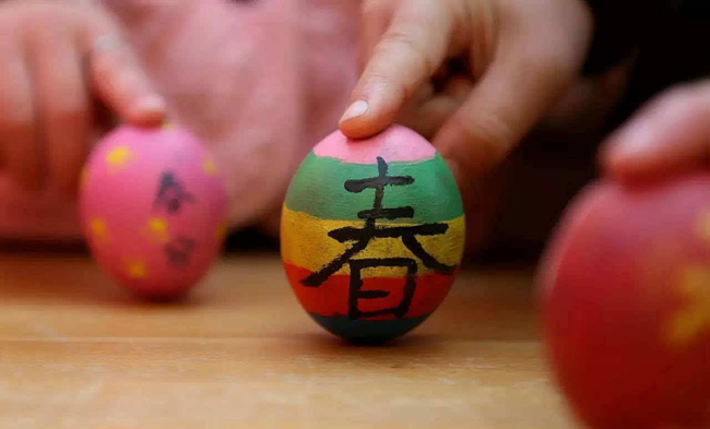 春分这一天,很多人都会去做"竖蛋"试验:选择一个光滑匀称、刚生下四五天的新鲜鸡蛋,轻手轻脚地在桌子上把它竖起来。虽然失败者颇多,但成功者也不少。春分是竖蛋游戏的最佳时光,故有"春分到,蛋儿俏"的说法。