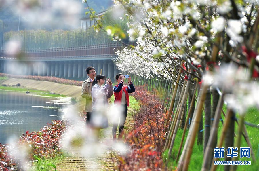 3月22日,人们在浙江省义乌市大陈镇拍摄樱花。 新华社发(吕斌 摄)