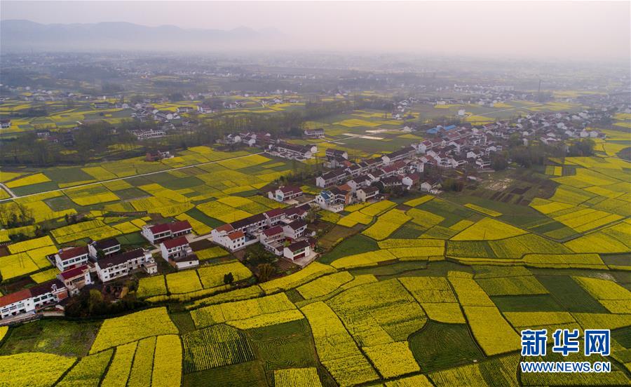 3月22日拍摄的汉中市南郑县新集镇太白村盛开的油菜花(无人机拍摄)。 新华社记者 陶明 摄