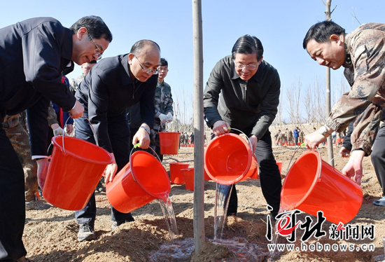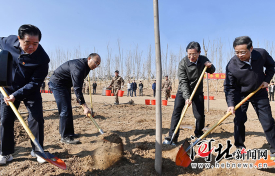 省委常委,省人大常委会、省政府、省政协领导成员,中部战区陆军军政主官,省军区司令员,省法院院长,省检察院检察长,武警河北省总队司令员、政委,其他省级干部等一同参加了义务植树活动。(记者四建磊)