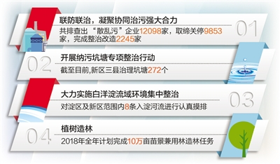 联防联治,凝聚起协同治污的强大合力。新区对环保部门督查发现的674个环境问题进行严格排查整治、严厉打击和严肃问责,所有环境问题全部得到整改。按照“关停取缔、整治提升”分类抓整治,新区共排查出“散乱污”企业12098家,取缔关停9853家,完成整治改造2245家。