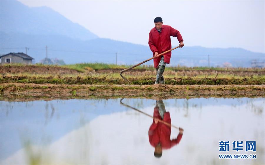3月25日,江西省永丰县潭城乡龙洲村的一名农民在整理水稻秧苗。春回大地,各地农民抓住农时,在田间辛勤劳作。 新华社发(刘浩军 摄)