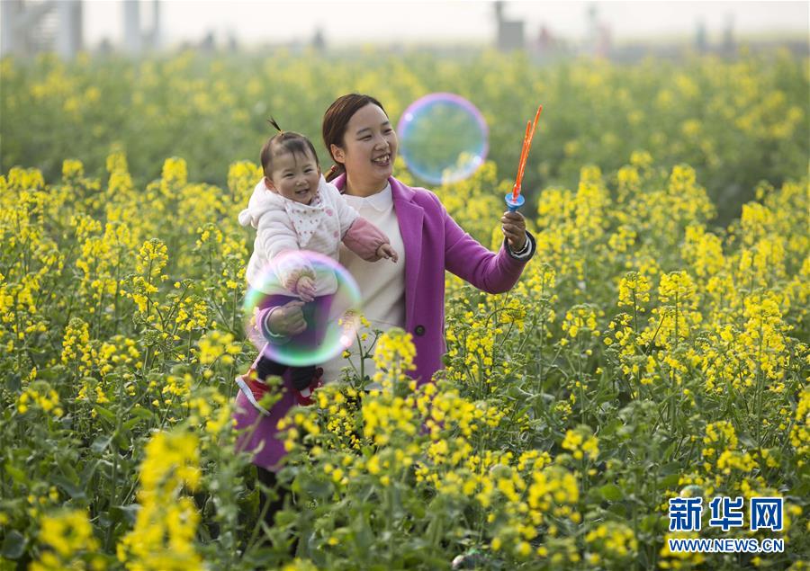 3月26日,游人在江苏泰州兴化千垛菜花风景区内赏花游玩。新华社发(汤德宏 摄)