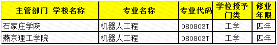 根据教育部2017年度高校本科专业备案和审批结果,此次共有60所高校获批“机器人工程”专业。其中,河北的石家庄学院和燕京理工大学成功获批。