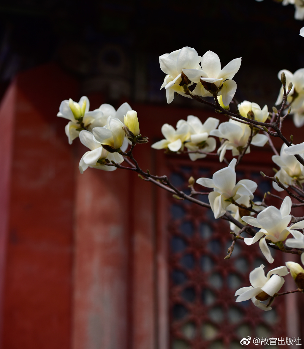 26日,故宫出版社在微博发出邀请:故宫传心殿的玉兰花已经到了盛花期。图片来源:故宫出版社官方微博 摄影:徐继维