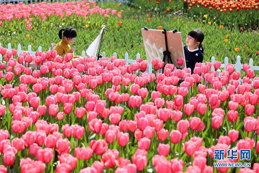 3月10日,在浙江省温岭市九龙湖湿地公园,小朋友在郁金香花海里写生。寒冬挥手去,春天翩然来。草木蔓发,鸟语花香,春风浅吟低语,呼唤人们投入自然的怀抱,赴一场春天的约会。 新华社发(周学军摄)