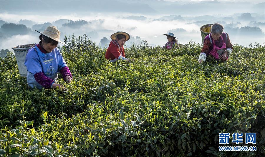 3月22日,在重庆市南川区大观镇,茶农在采摘春茶。寒冬挥手去,春天翩然来。草木蔓发,鸟语花香,春风浅吟低语,呼唤人们投入自然的怀抱,赴一场春天的约会。 新华社发(瞿明斌 摄)