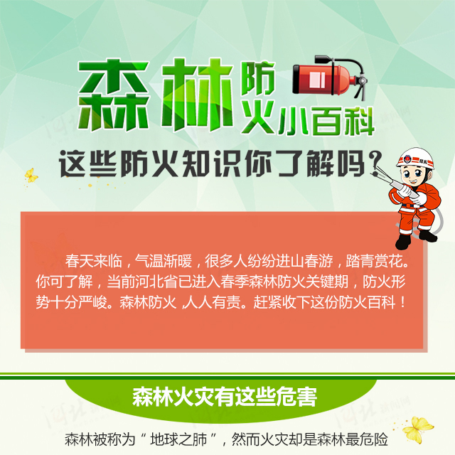 春天来临,气温渐暖,很多人纷纷进山春游,踏青赏花。你可了解,当前河北省已进入春季森林防火关键期,防火形势十分严峻。森林防火,人人有责。赶紧收下这份防火百科!