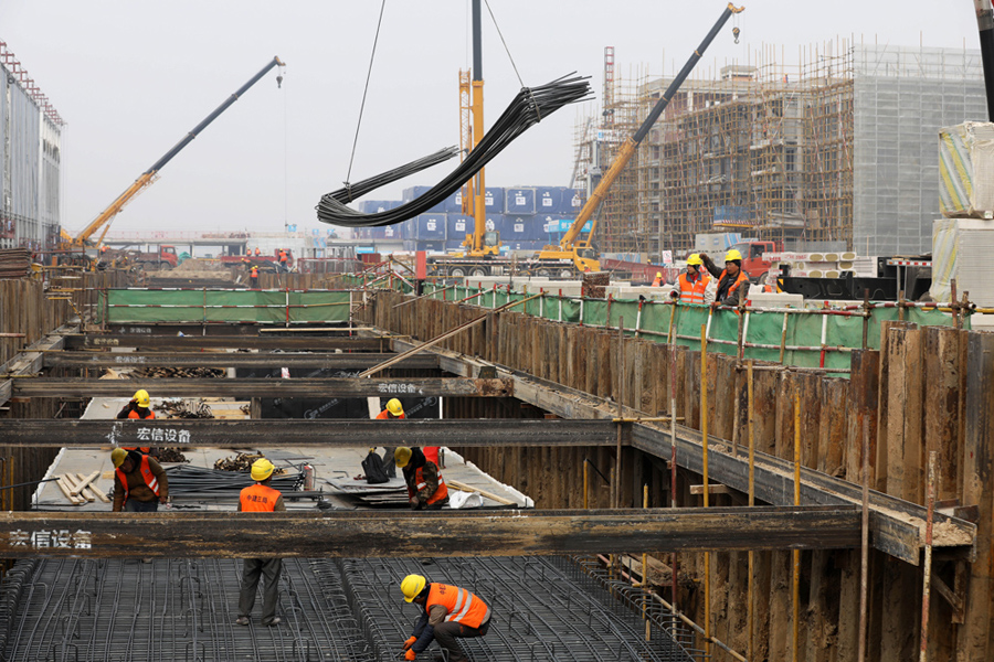 2018年2月19日,工人们在雄安市民服务中心项目现场施工。