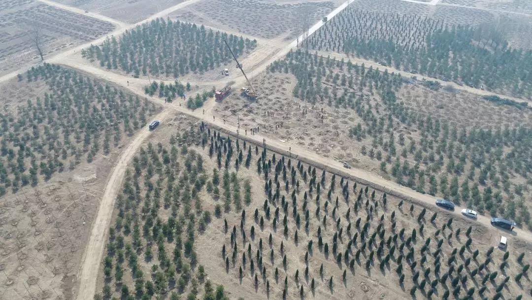 2018年3月30日,9号地块春季造林项目、10万亩苗景兼用林春季造林任务正在火热推进。预计到今年年底,“千年秀林”面积将达11万亩植树1100万多株。