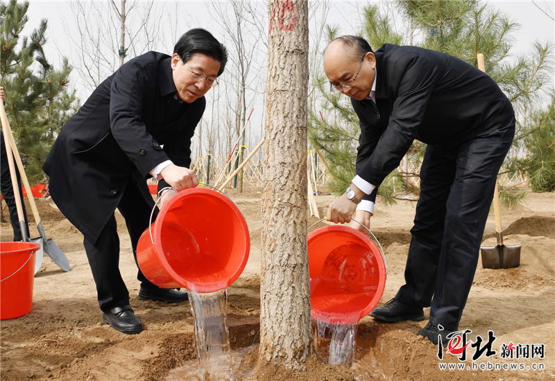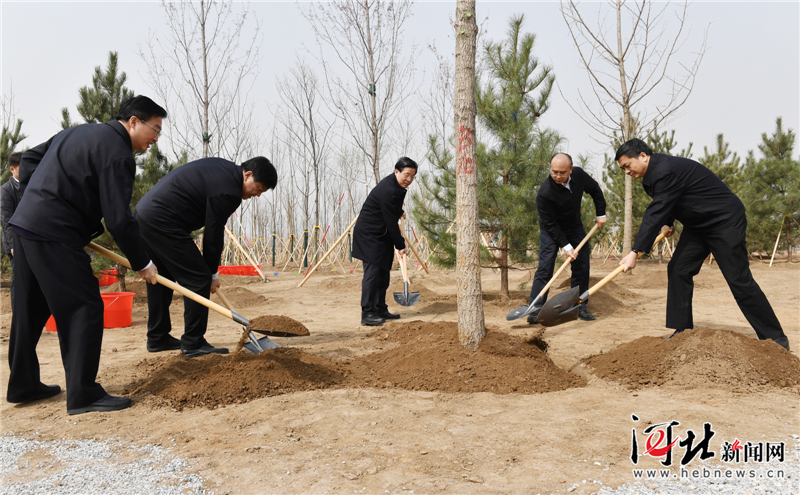 3月31日,省委书记、省人大常委会主任王东峰,省委副书记、省长许勤专程赴雄安新区调研检查。这是王东峰、许勤在城市森林植树造林点参加植树造林活动。 记者赵威摄
