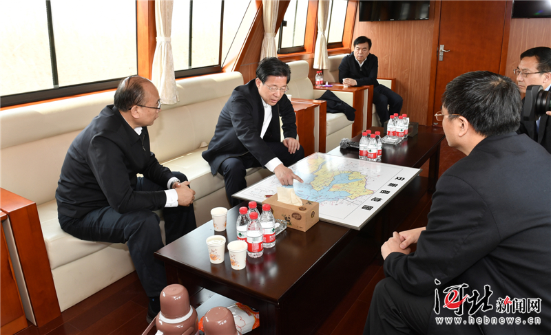 3月31日,省委书记、省人大常委会主任王东峰,省委副书记、省长许勤专程赴雄安新区调研检查。这是王东峰、许勤乘船采集检测白洋淀水样,认真听取白洋淀生态环境治理和保护等工作汇报。 记者赵威摄