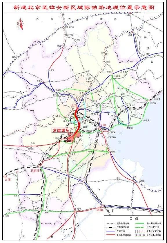 2018年2月28日,京雄城际铁路开工建设。京雄城际铁路是雄安新区首个重大交通项目,起自京九铁路李营站,经北京大兴区、北京新机场、霸州市,终至雄安新区,正线全长92.4公里,共设5座车站,总投资约335.3亿元。该铁路可实现30分钟从北京城区到达雄安新区。