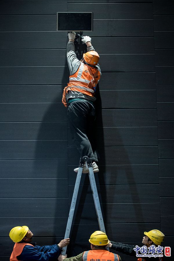 雄安新区市民服务中心内,工作人员正在调试会场设备。