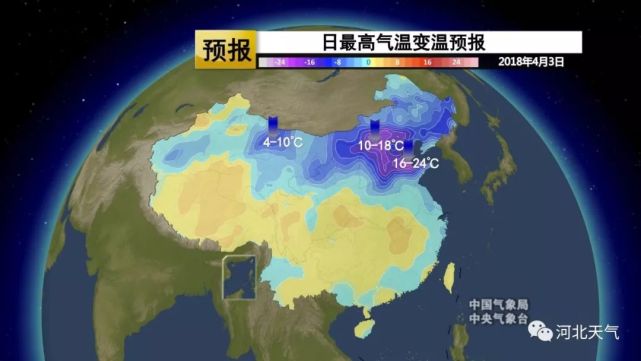 4月3日-5日,冷空气将袭击河北!气温怒降!全省大部分地区气温下降7~10℃,局地下降12℃以上,其中,沧州降幅达21℃!和周末的燥热形成鲜明对比,凉意明显。