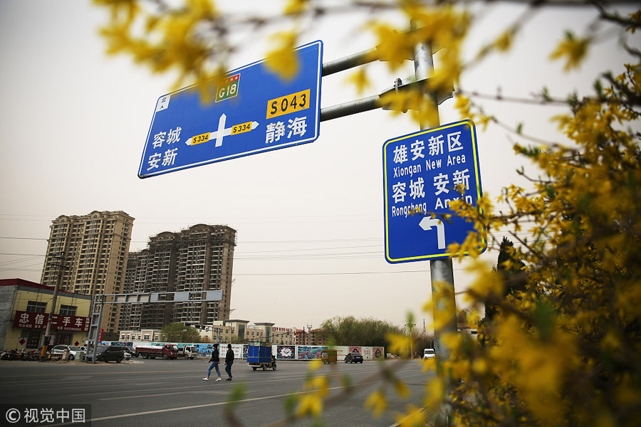 雄安新区的设立,又唱响了一个“春天的故事”。2018年3月28日,漫步在雄安新区雄县城区,随处可见带有“雄安”字样的路牌和宣传展板。