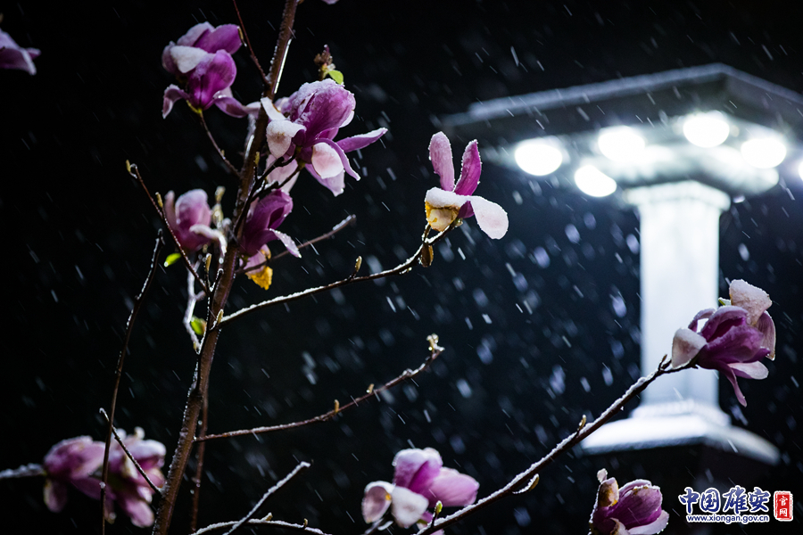 清明时节雨纷纷,2018年4月4日晚,雄安新区迎来了暮春的一场雨夹雪,路旁的玉兰花亭亭玉立,含苞怒放。记者王京卓 摄
