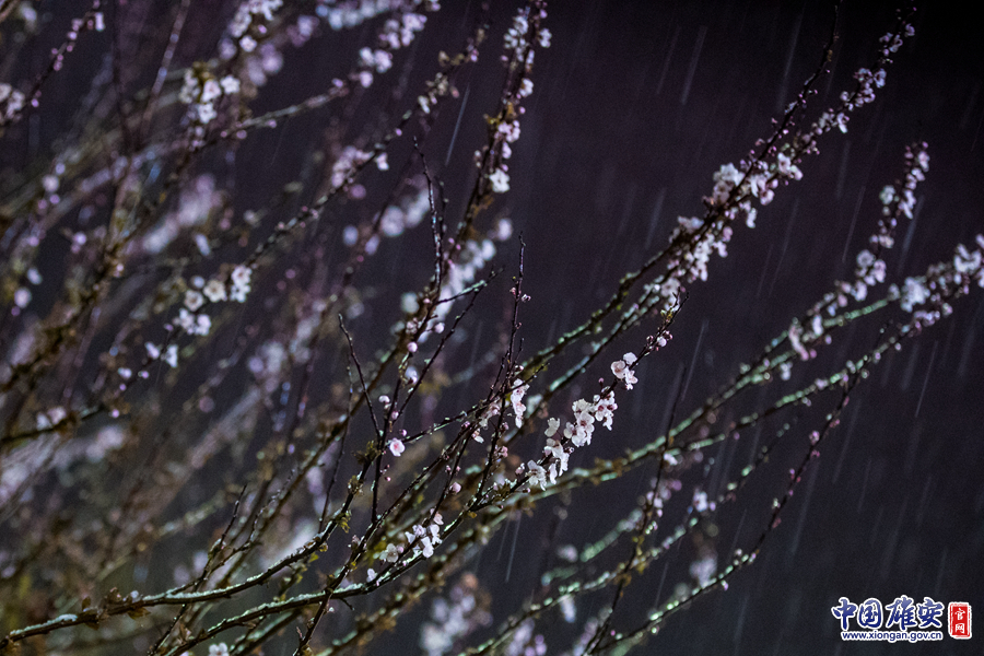 桃花春雨好不惬意,一场雨夹雪带来了气温的“大跳水”,雄安新区容城县街头的桃花在雨中静悄悄地开放。记者王京卓 摄