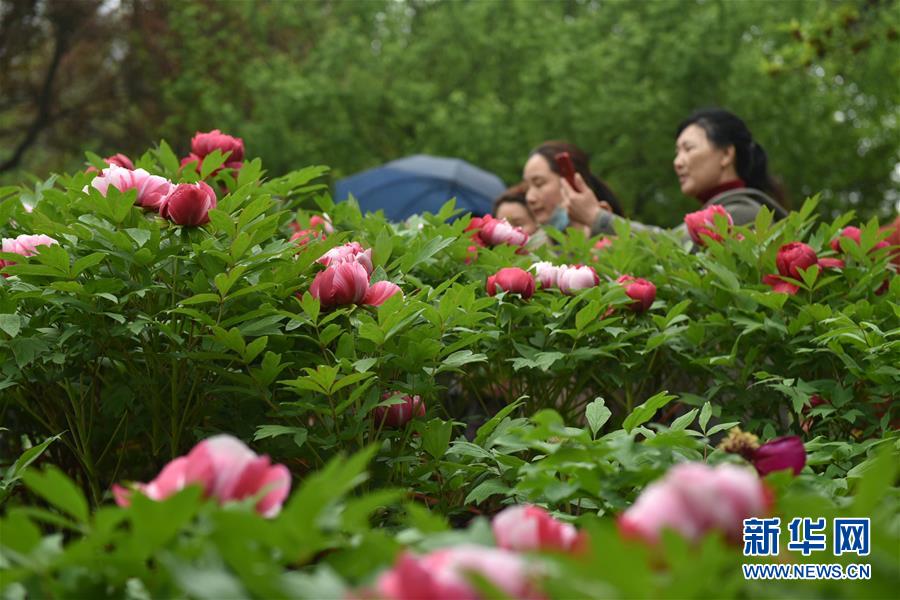 4月5日,游人在江苏常州市东坡公园牡丹园赏花。清明小长假期间,人们纷纷走到户外,踏青赏花,亲近自然。 新华社发(胡平 摄)