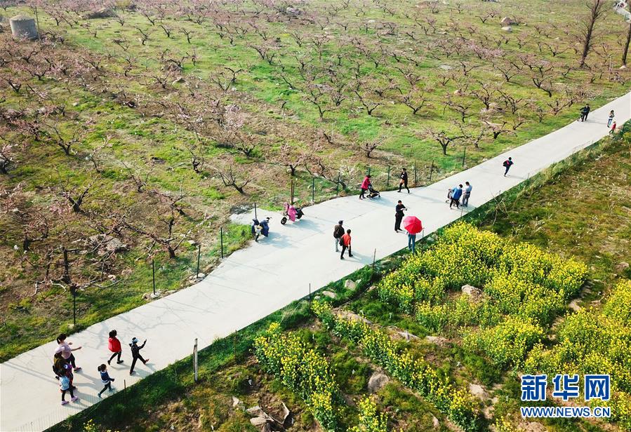 4月5日,在江苏连云港市太白涧景区,游人在踏青赏花。清明小长假期间,人们纷纷走到户外,踏青赏花,亲近自然。 新华社发(耿玉和 摄)
