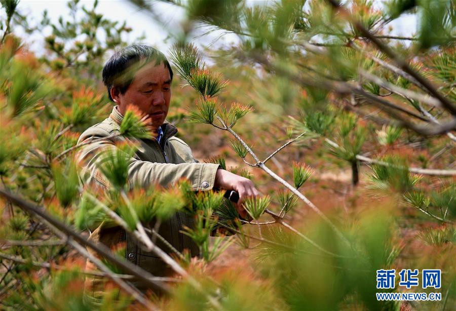 工人在河北大厂回族自治县镇西关村对松树进行养护(3月30日摄)。 2018年,毗邻京津的河北省廊坊市将以打造京津保平原生态过渡带核心区为目标,在全市营造百万亩平原森林,全力实施“一带多廊、百园千村、万亩秀林”重点工程。全市计划年内完成营造林100万亩,其中春季完成80万亩,到年底全市森林覆盖率达到31%以上,成为京津绿色生态屏障。新华社记者王晓摄