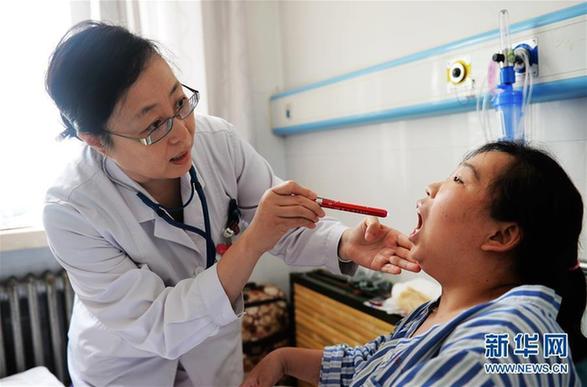 乞国艳在病房查看患者病情(2016年5月10日摄)。新华社记者王晓 摄