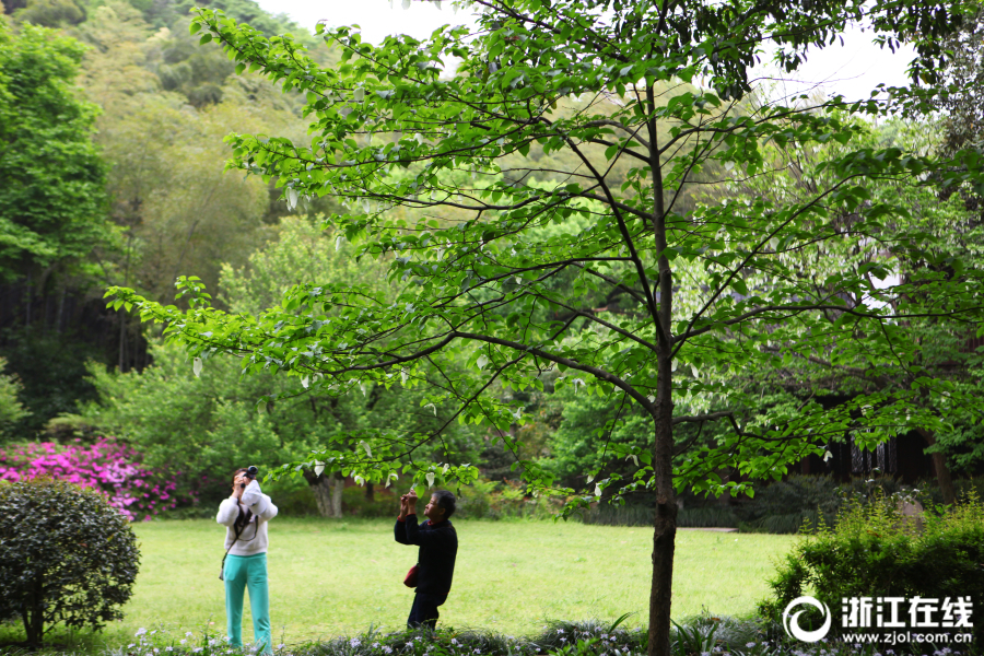 珙桐有“植物活化石”之称,是1000万年前新生代第三纪留下的孑遗植物,在第四纪冰川时期,大部分地区的珙桐相继灭绝,只有在中国南方的一些地区幸存下来,目前是国家8种一级重点保护植物中的珍品,因其花形酷似展翅飞翔的白鸽而被西方植物学家命名为“中国鸽子树”。由于森林的砍伐破坏及挖掘野生苗栽植,珙桐数量较少,分布范围也日益缩小。在杭州植物园目前有五六棵较大的珙桐,长势良好,也因珙桐花形状较为奇特吸引了大量游客前来观赏。(浙江在线记者姚群 石怡锋 拍友钱江波摄)