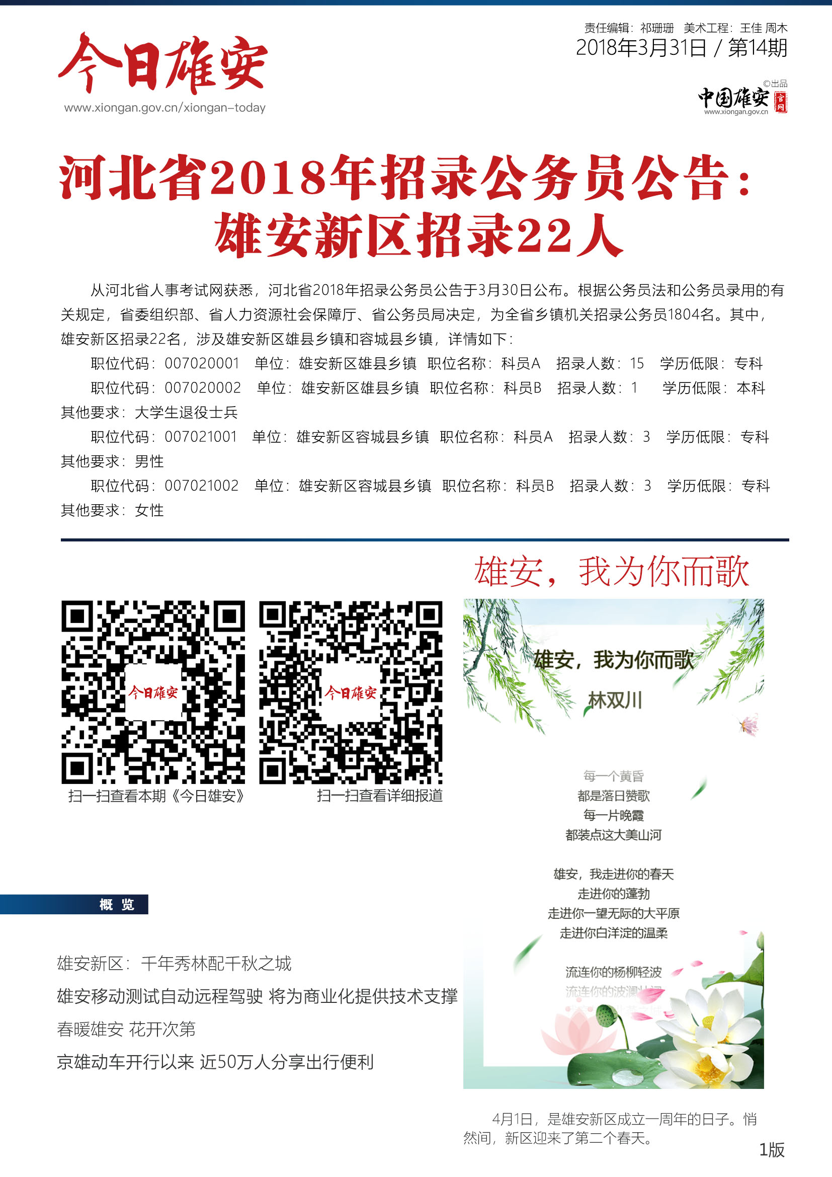 《今日雄安》 2018年3月31日 第14期