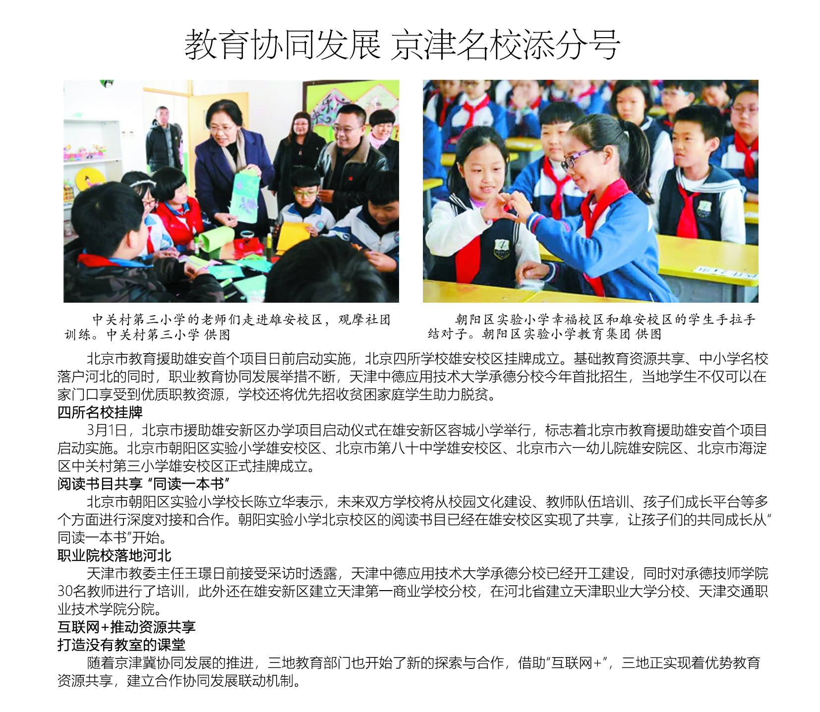 Beijing provides targeted assistance to schools in Xiongan New Area