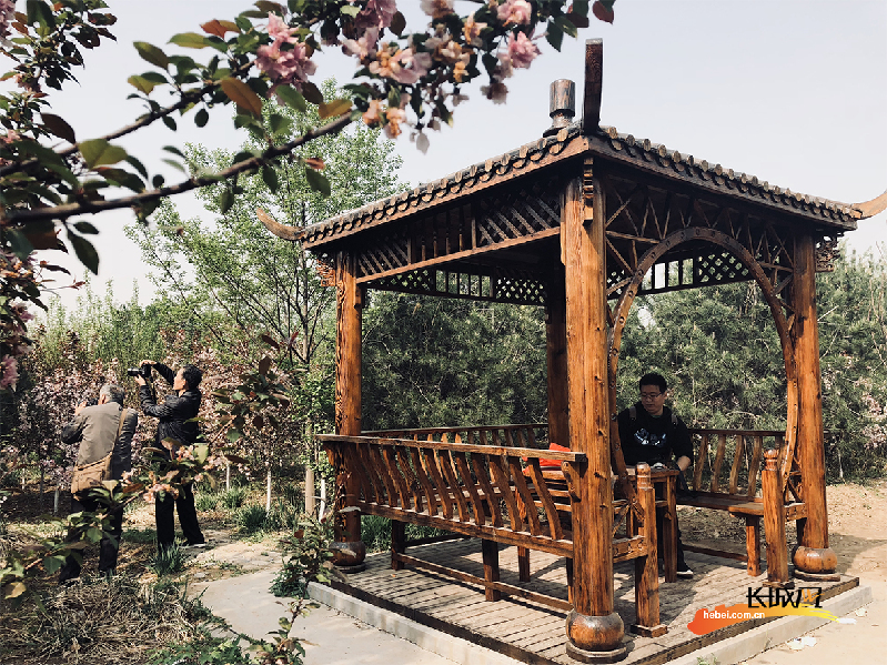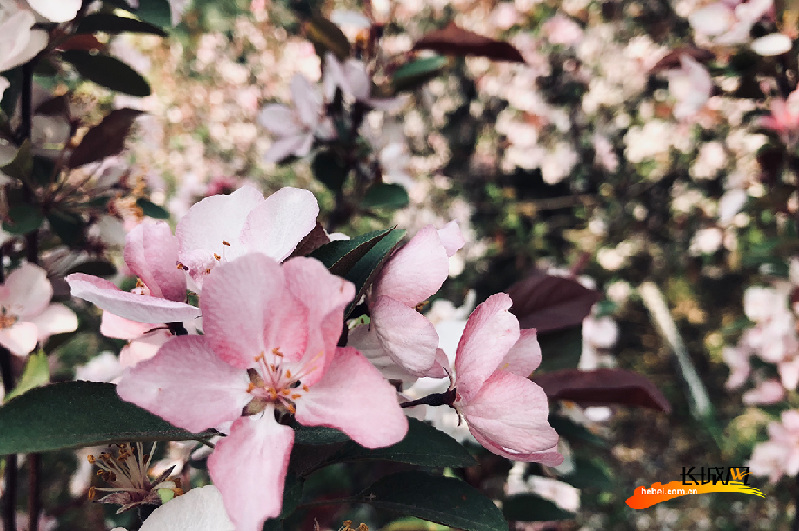 大自然园艺欢乐林场内不仅有红樱花,还有榆叶梅、海棠花、郁金香、紫藤花、丁香等时令花卉争相怒放,花枝拥簇、多姿多彩,花朵芬芳,空气中尽是甜蜜。置身花海,微风吹过,淡淡的花香萦绕身旁,让人心旷神怡。花田里深呼吸,带着暖暖的温情,送上清雅的风景,绽放唯美的景色。(宋宇星)