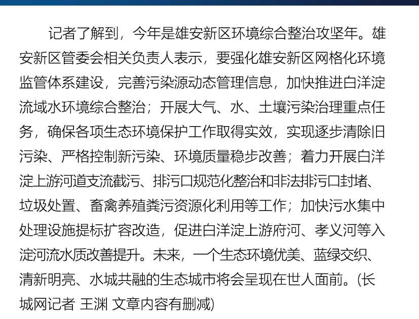 雄安新区蓝绿空间占比稳定在70%