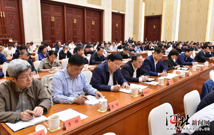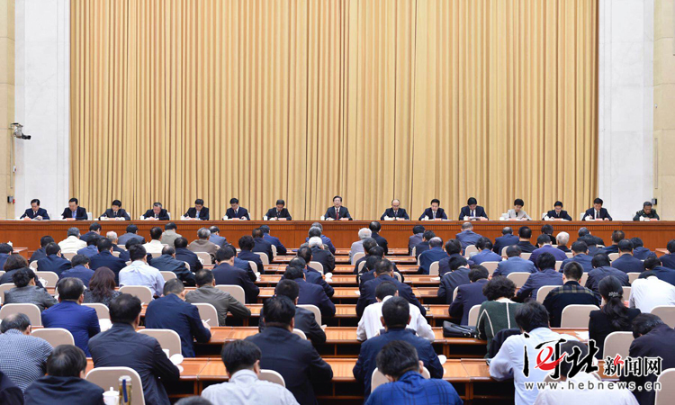 4月21日,省委召开全省领导干部会议,认真传达学习贯彻中共中央 国务院批复精神,就组织实施和落实雄安新区规划纲要进行全面动员。这是会议现场。 记者赵威摄